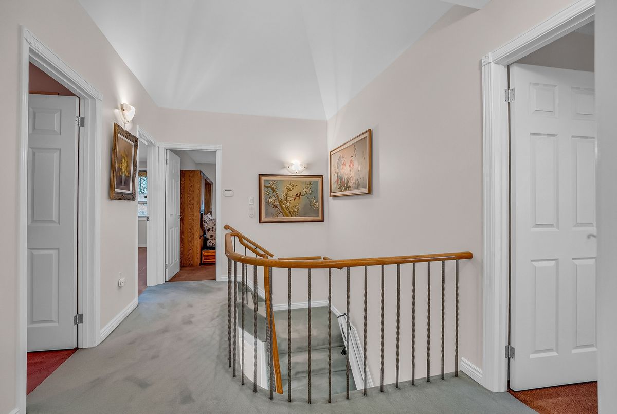 Exceptional custom-built home on a premium oversized lot with no houses behind, offering rare privacy and strong long-term value in a highly desirable family neighbourhood directly across from Dunbarton High School. Extensive interlocking surrounds the property, creating impressive curb appeal and a refined, low-maintenance outdoor setting. A Durable lifetime metal roof, sprinkler system, and custom-built shed further enhance the exterior quality. The Inviting interior features a well-maintained functional layout with newer washrooms, California shutters, skylights in both the primary bedroom and bathroom, central vacum, central intercom, and a warm family room with gas fireplace. Enjoy year-round relaxation in the enclosed hot tub. A separate side entrance leads to a spacious basement recreation area with a 2-piece washroom and potential to add a shower, offering flexibility for extended family or future income possibilities. Additional features include tankless water heater, water softener, and security camera system. Located in a an area experiencing ongoing redevelopment and modernization, presenting future possibilities for buyers to explore, subject to their own due diligence and municipal approvals. Close to parks, shopping, transit, and everyday amenities.