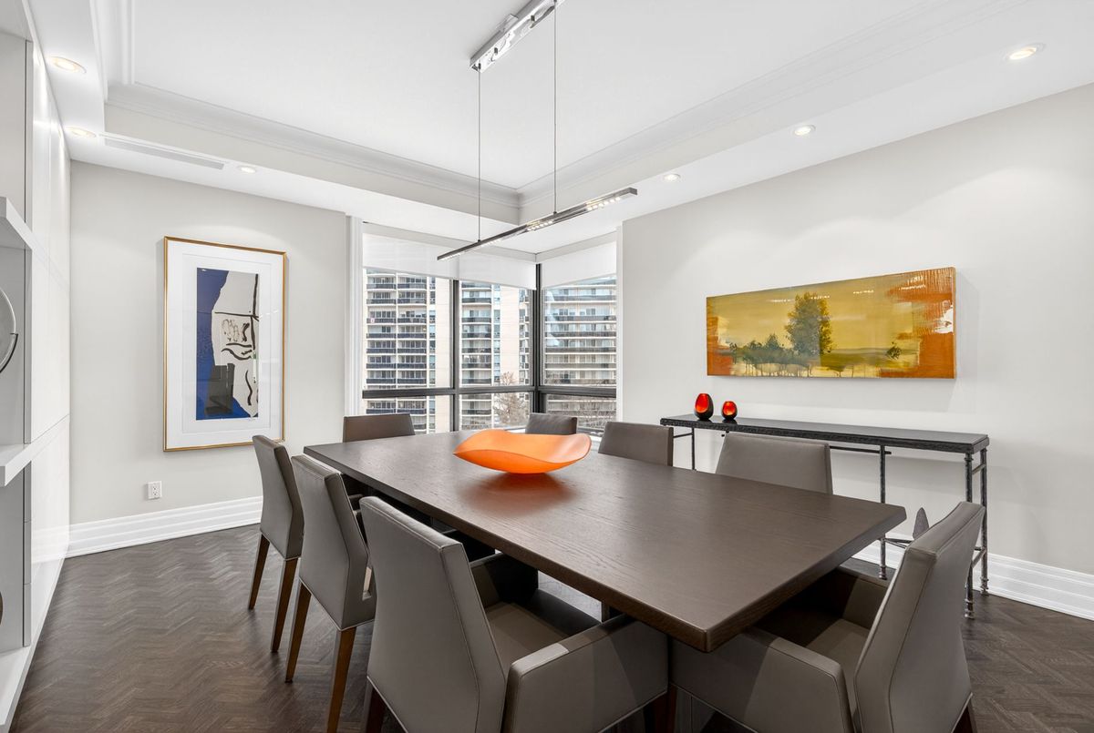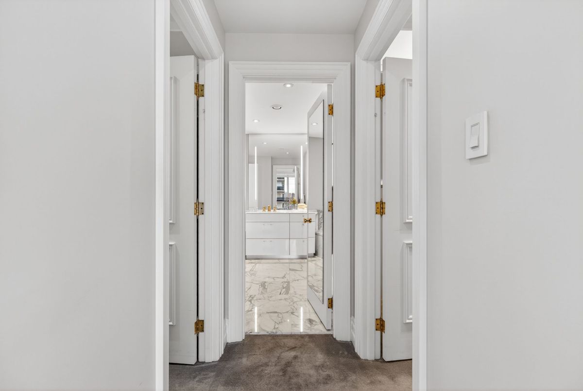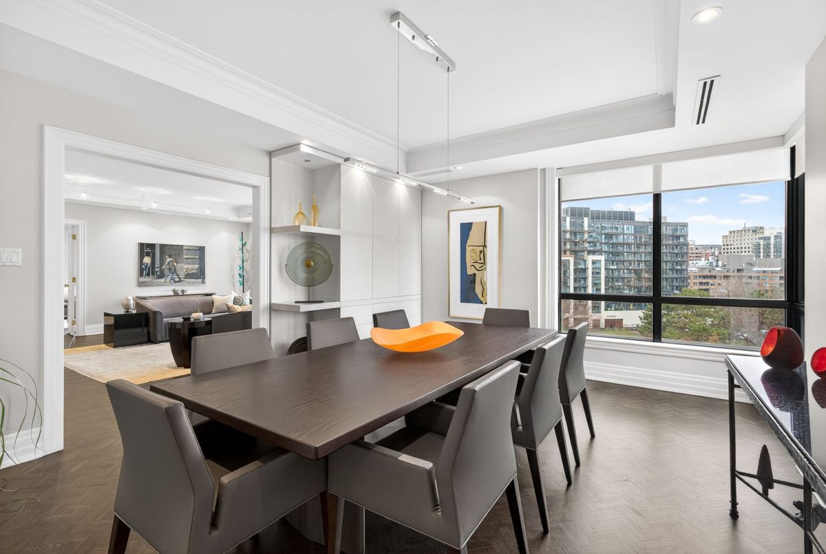 Suite 701 is a superb and rarely offered two bedroom plus den suite in one of Summerhill's most coveted boutique buildings. Recessed back from the street, this highly regarded condominium awards just 28 luxury units, with residents enjoying the most attentive and personalized concierge services available. With valet service every day, simply leave your car with the concierge and be elevated to your suite with direct access from the elevator. A private suite lobby conceals the residence before opening to the vast and impressive floor plan beyond it. Principal spaces are elegantly poised and designed to allow for your large furnishings to "downsize" with you. The gorgeous living room is expanded by a large bay window, overlooking the trees of courtyards below. The dining room clearly defines the ability to host large gatherings, and custom millwork will conceal your formal stemware and china. An eat-in kitchen is lined with Calacatta marble countertops, offering generous workspace in conjunction with built-in stainless steel appliances. The breakfast room overlooks the terrace, with a walk out to the outdoor space to be enjoyed with views over the neighbouring reservoir. Flanking the opposite side of the living room, a comfortable study is lined with custom millwork, curating office storage and a television niche. Views carry south to the water and over Summerhill's treetops. The primary suite is elegant and substantial, with king-sized proportions, his and her closets, and a large marble-clad six-piece ensuite bathroom. Given the split bedroom design of the floor plan, the second bedroom lies on the opposite side of the suite with its own ensuite and two large closets. Custom millwork and storage outfit this second bedroom and it offers a walk out to the terrace as well. The services of this building cannot be underestimated. It offers attentive valet concierge services, in-house management, a newly renovated salt water pool, large gym, and two bedroom guest suite.