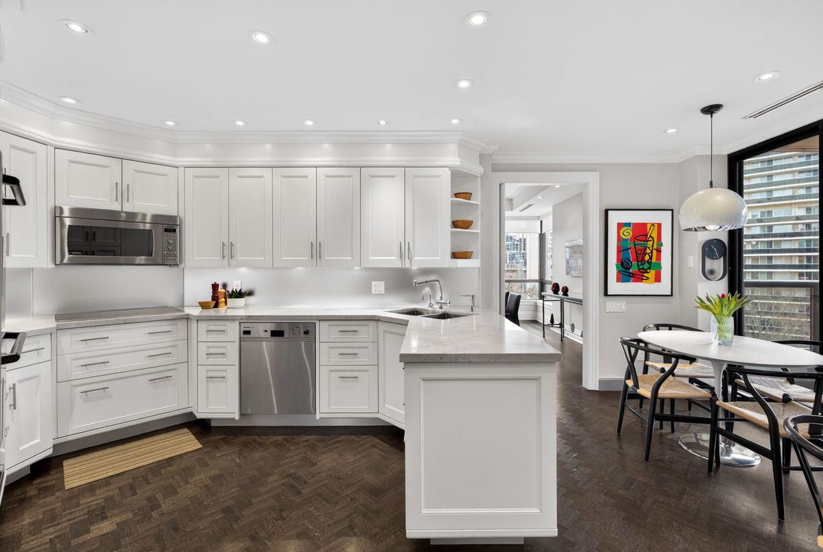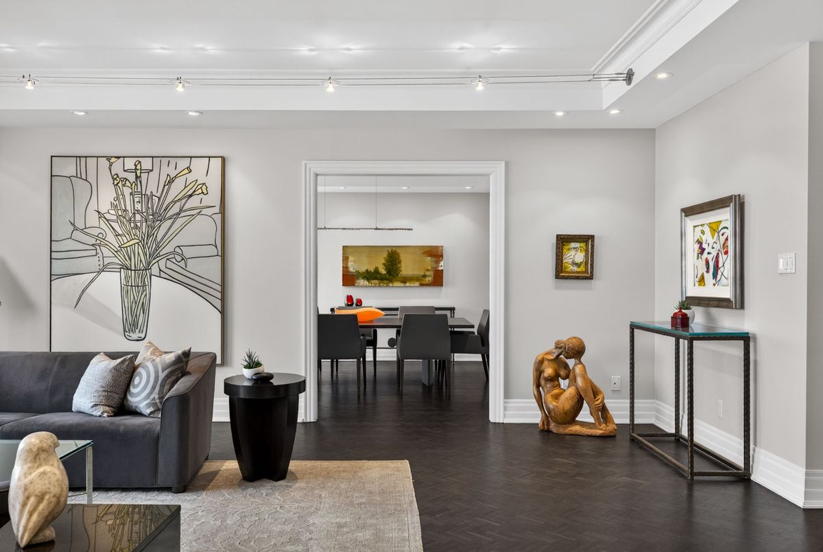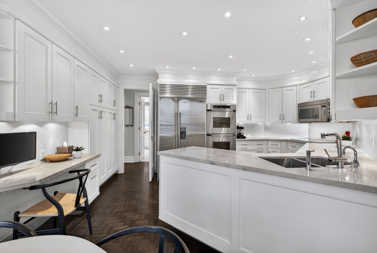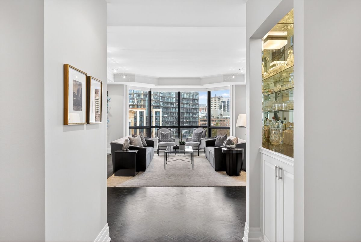 Suite 701 is a superb and rarely offered two bedroom plus den suite in one of Summerhill's most coveted boutique buildings. Recessed back from the street, this highly regarded condominium awards just 28 luxury units, with residents enjoying the most attentive and personalized concierge services available. With valet service every day, simply leave your car with the concierge and be elevated to your suite with direct access from the elevator. A private suite lobby conceals the residence before opening to the vast and impressive floor plan beyond it. Principal spaces are elegantly poised and designed to allow for your large furnishings to "downsize" with you. The gorgeous living room is expanded by a large bay window, overlooking the trees of courtyards below. The dining room clearly defines the ability to host large gatherings, and custom millwork will conceal your formal stemware and china. An eat-in kitchen is lined with Calacatta marble countertops, offering generous workspace in conjunction with built-in stainless steel appliances. The breakfast room overlooks the terrace, with a walk out to the outdoor space to be enjoyed with views over the neighbouring reservoir. Flanking the opposite side of the living room, a comfortable study is lined with custom millwork, curating office storage and a television niche. Views carry south to the water and over Summerhill's treetops. The primary suite is elegant and substantial, with king-sized proportions, his and her closets, and a large marble-clad six-piece ensuite bathroom. Given the split bedroom design of the floor plan, the second bedroom lies on the opposite side of the suite with its own ensuite and two large closets. Custom millwork and storage outfit this second bedroom and it offers a walk out to the terrace as well. The services of this building cannot be underestimated. It offers attentive valet concierge services, in-house management, a newly renovated salt water pool, large gym, and two bedroom guest suite.
